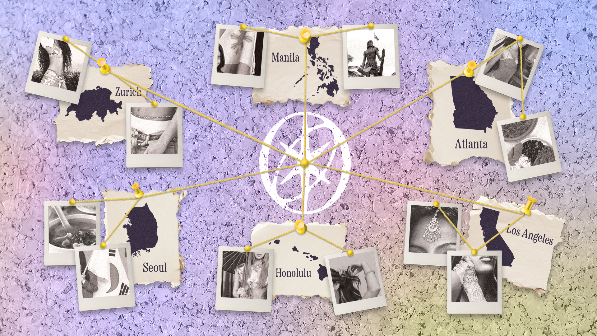 All individuals come together to form one group despite various backgrounds, identities, and upbringings. They are united together by artistry, illustrated by the connecting of pins and string at the center logo for the group.