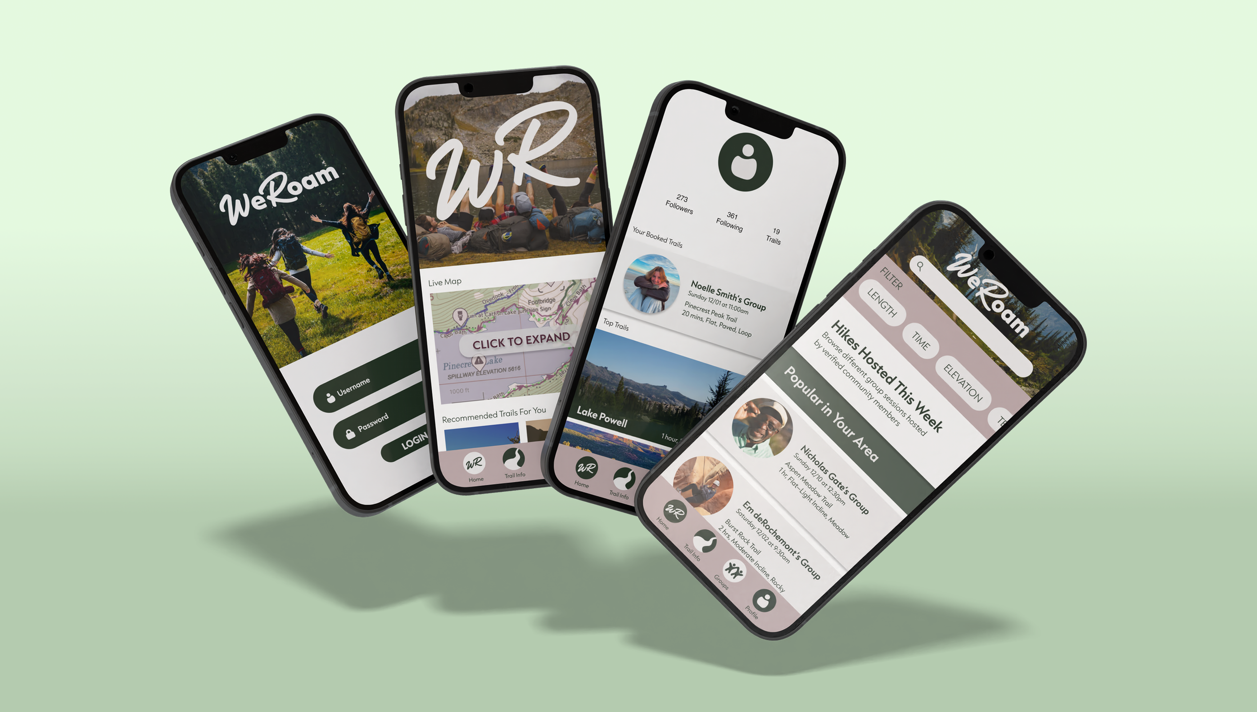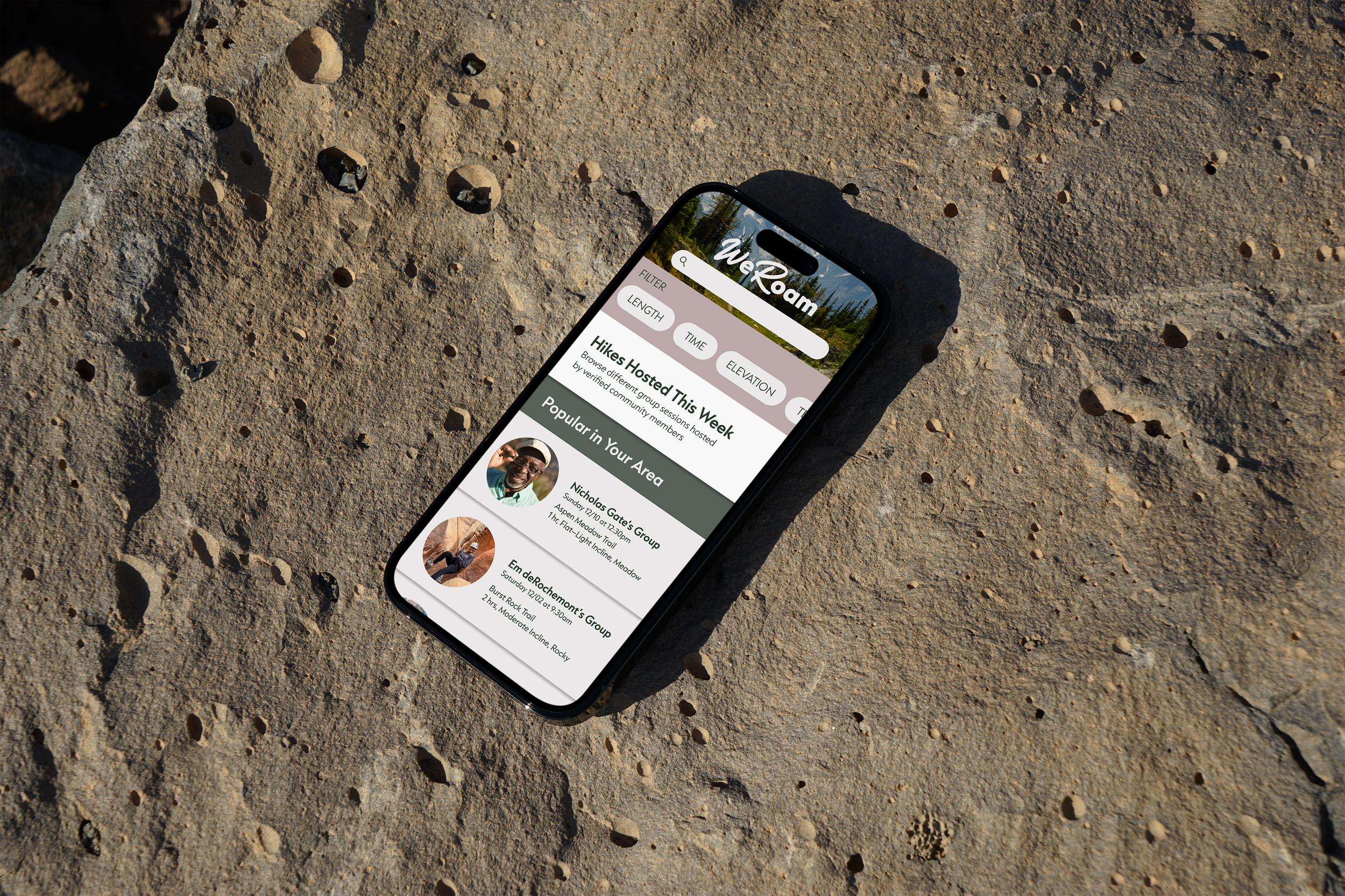 WeRoam is an app concept driven to make hiking more accessible and less daunting. Its community element, where verified members can host hiking groups, partnered with hyper-specific filters that better define difficulty levels of trails make it the perfect app for novice hikers.